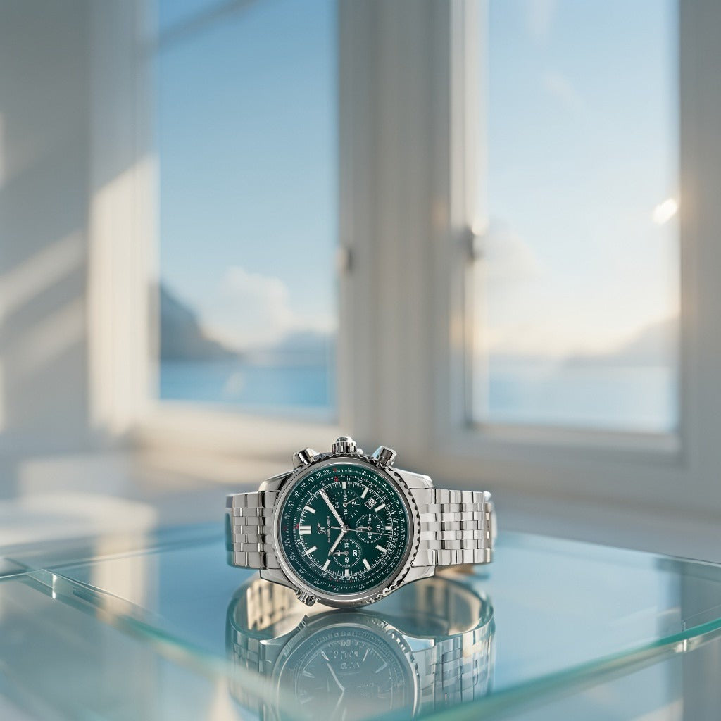 Encased in radiant gold with a deep emerald green dial, it’s a timeless expression of legacy, luxury, and leadership.